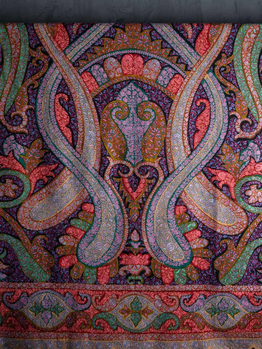 The Boteh shawls can also have Bale, Kaaj or Kingar along the sides to add to the overall beauty.
