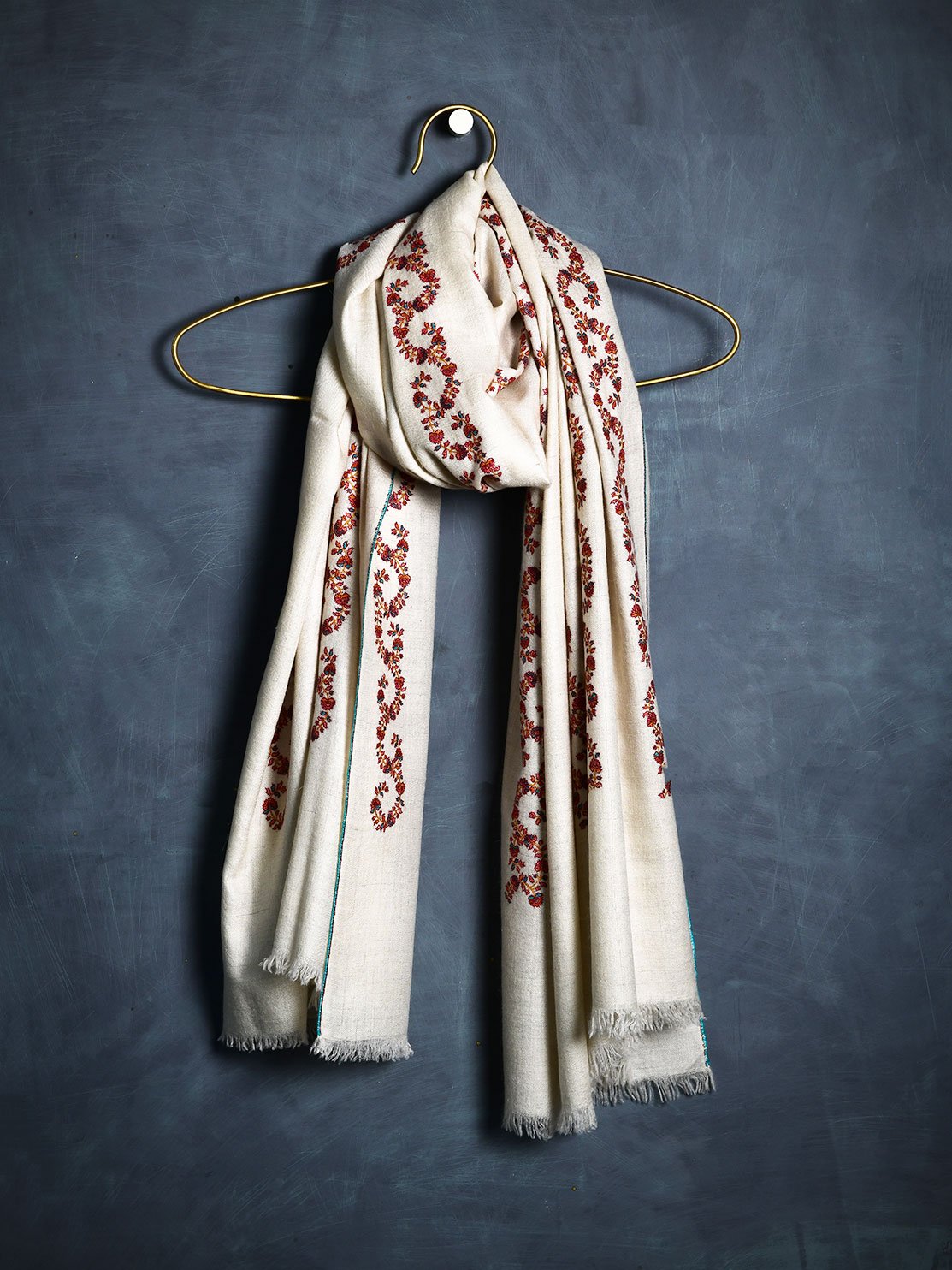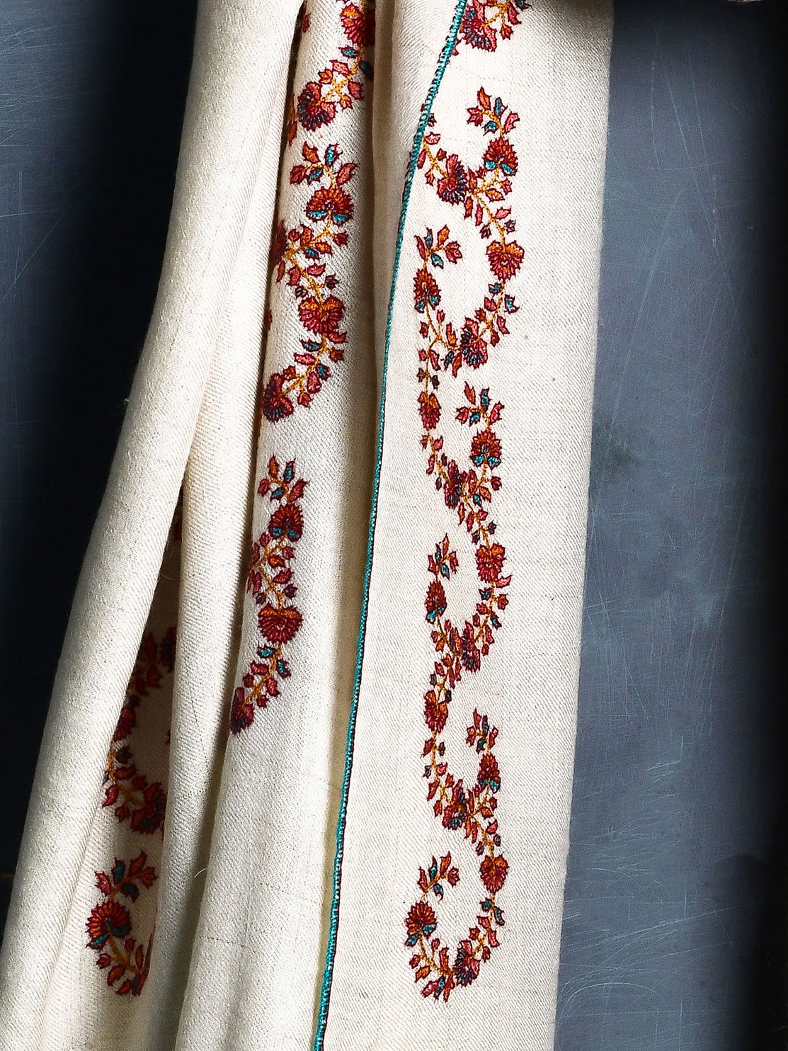 BALE is the original name for the straight line of colorful embroidery on all four sides of a shawl, usually measuring about 2-3 cms. This line of embroidery is traditionally a highlight on the edges of a shawl.