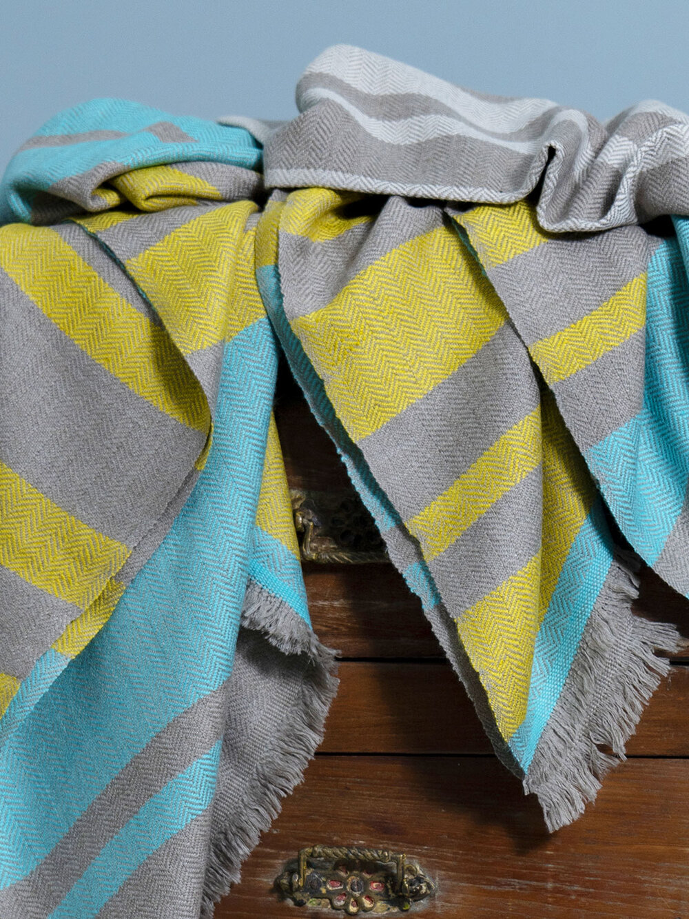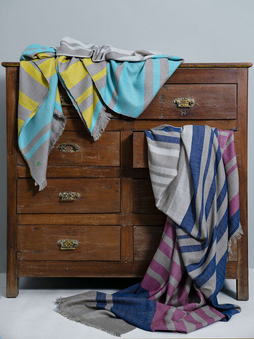 Our modern and lighter version of the throw, brightened by colorful stripes.
