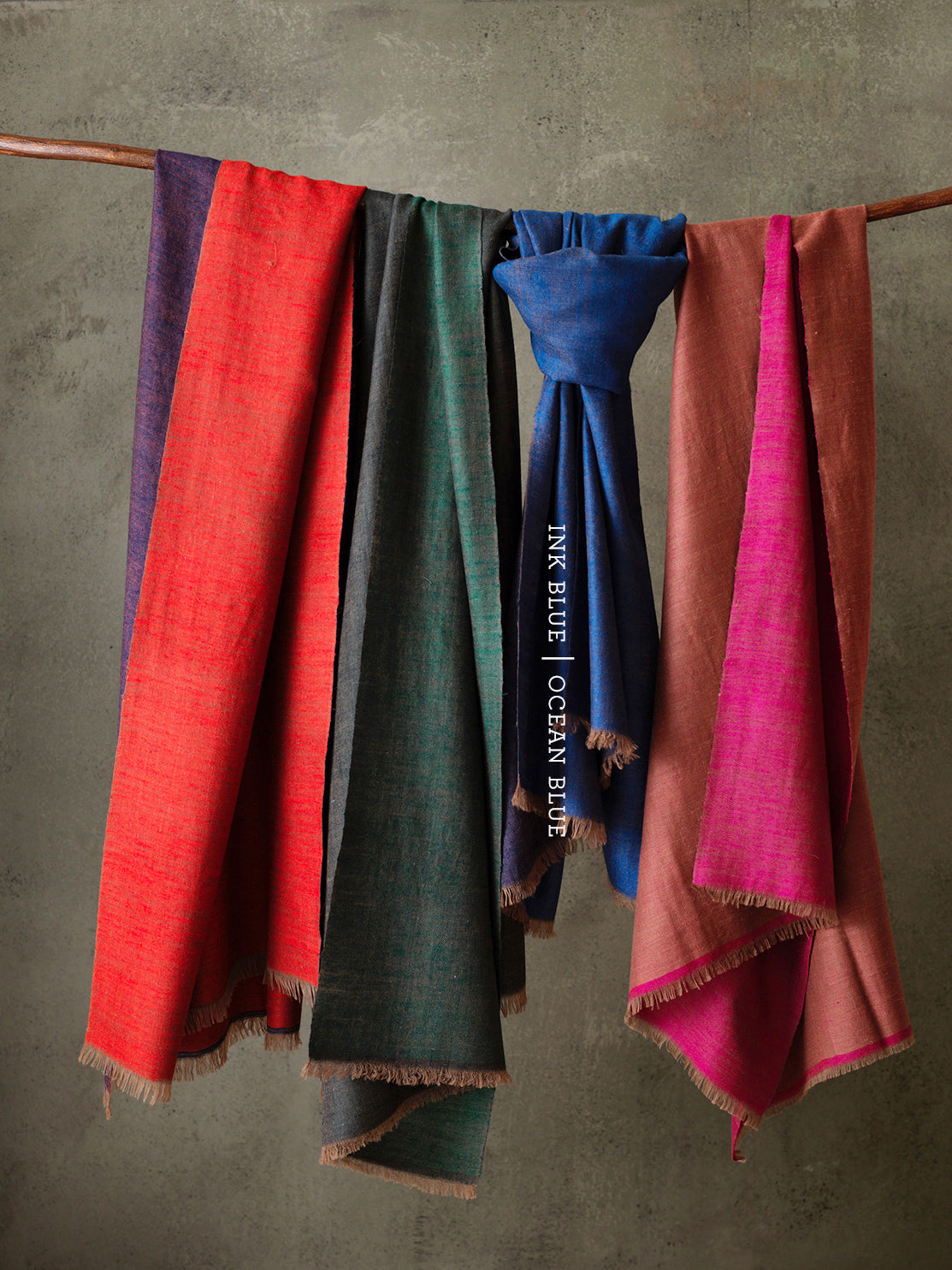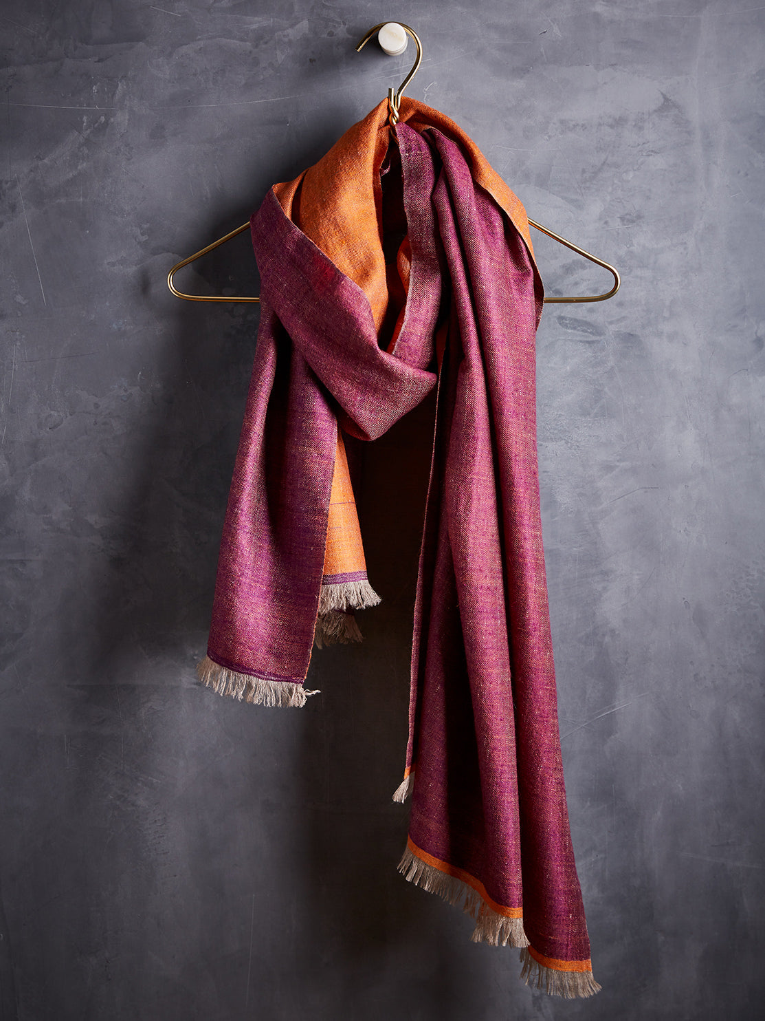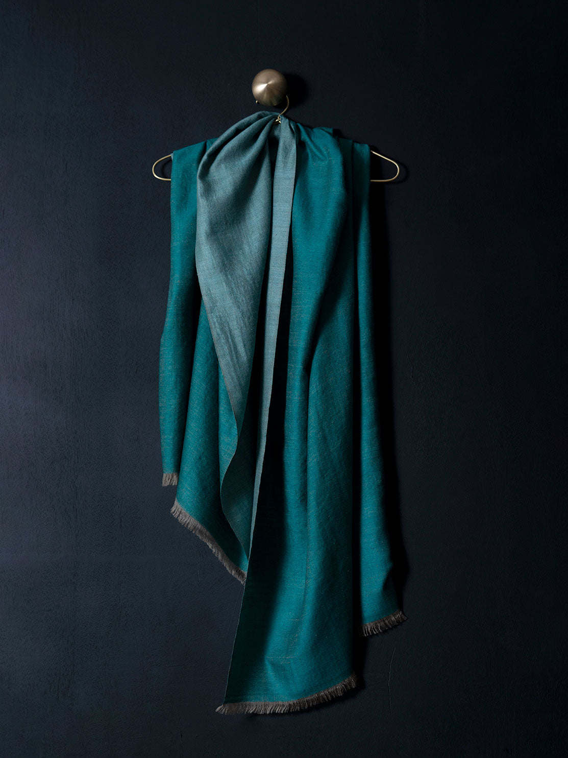Do Rung, meaning two colours, is a stunning iridescent, reversible shawl which can be worn both ways.