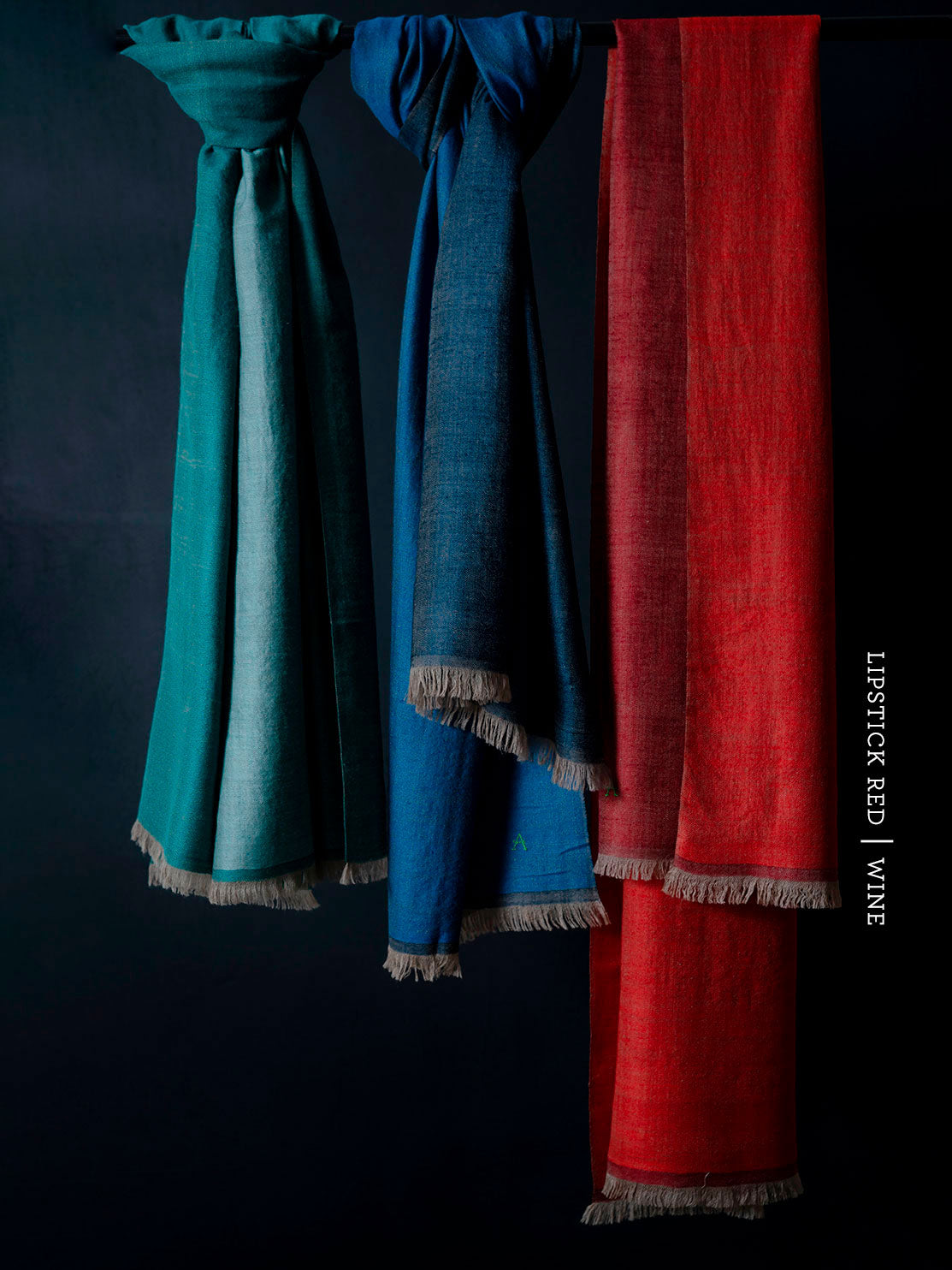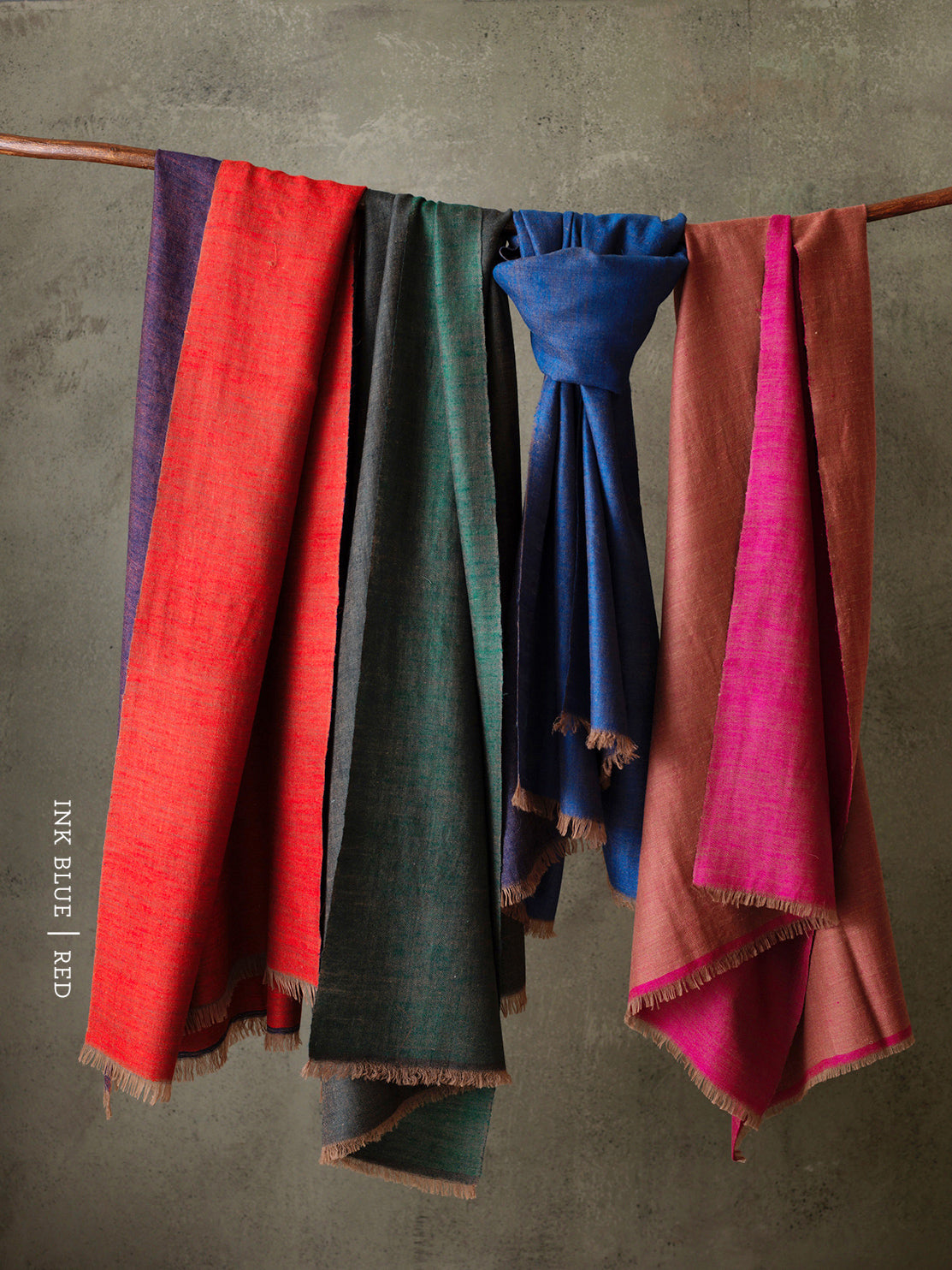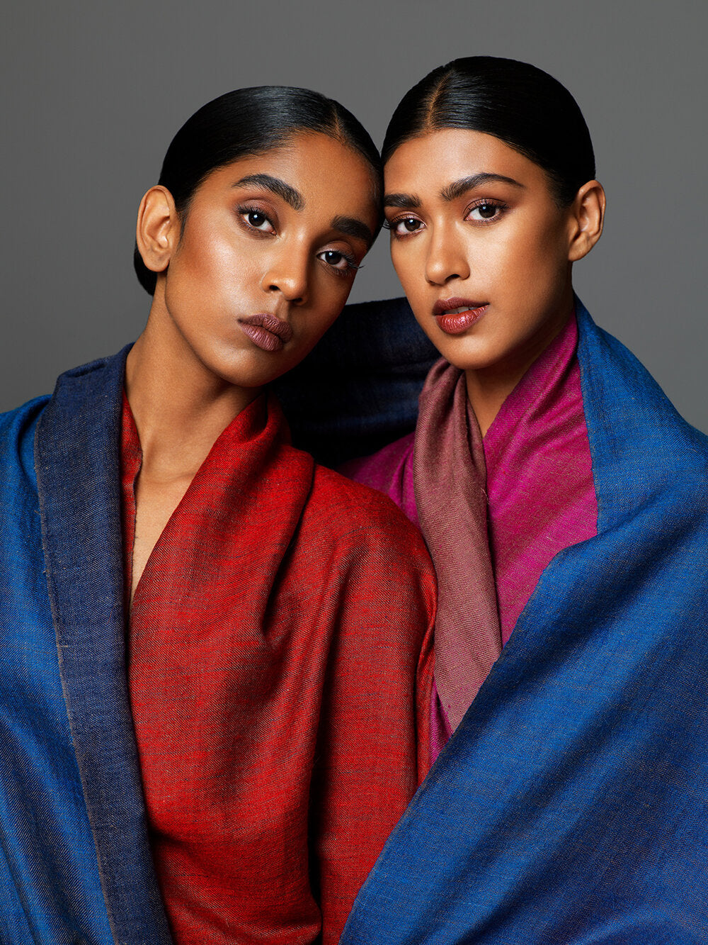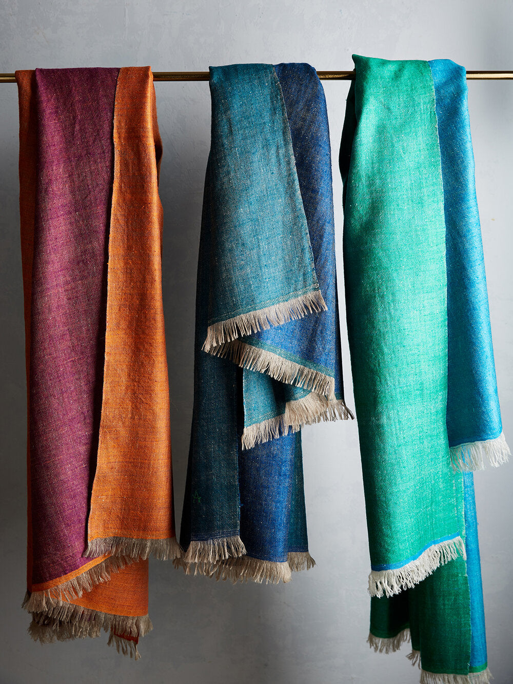 Do Rung, meaning two colours, is a stunning iridescent, reversible shawl which can be worn both ways.
